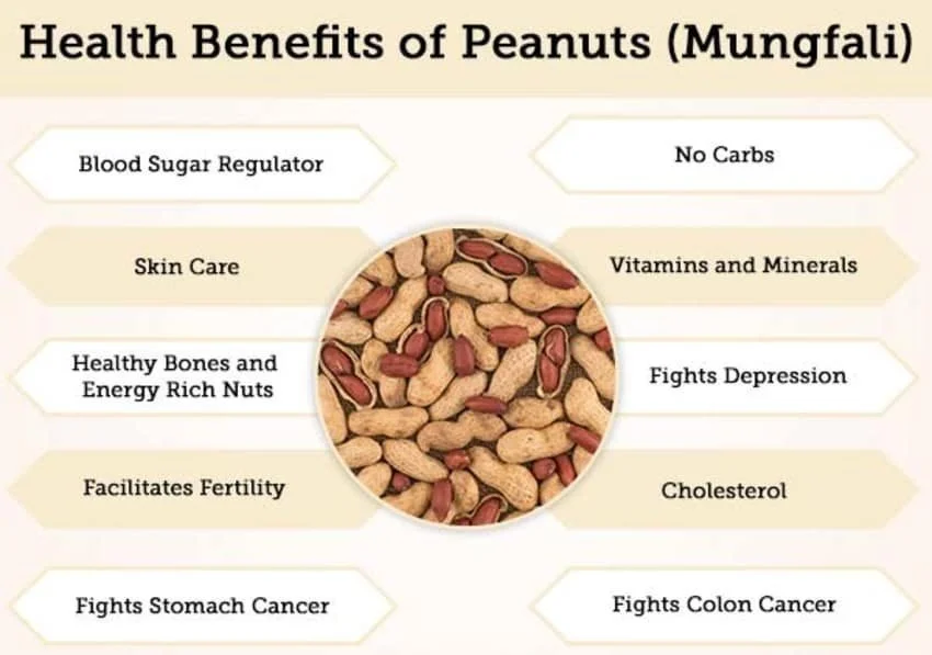 Peanut month is a great time to talk about the nutrition of these amazing legumes! That’s right—they are not actually tree nuts! You may have talked to folks who are allergic to tree nuts but then you’ve seen them eat peanuts in their spare time or perhaps it’s the other way around— allergic to peanuts but eating almonds! Peanuts are actually in the same family as peas and beans, which gives them a unique place in the food charts. Peanuts grow in a pod and therefore fit the requirements of legumes! Above you’ll see the chart explaining the many health benefits to eating peanuts but please take caution—over the last years there has been an increase in peanut related allergies and therefore you should be considerate and make sure you ask if there are allergies before making that delicious peanut recipe this month to share with friends!
